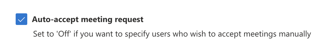 - Auto Accept Invitations - Under Manage Settings, the booking option, Auto-accept meeting request should be checked. This makes reserving an open room faster and overlapping reservations less likely to happen.